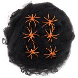 Декоративное украшение, Паутина и 6 пауков, 60 гр, Черный/Оранжевый