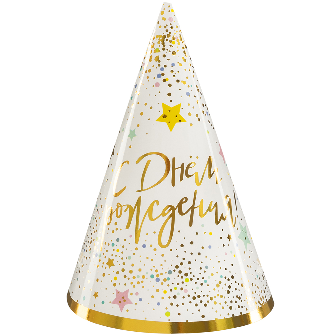 Колпаки, С Днем Рождения (сверкающие блестки), Металлик, 16 см, 6 шт.