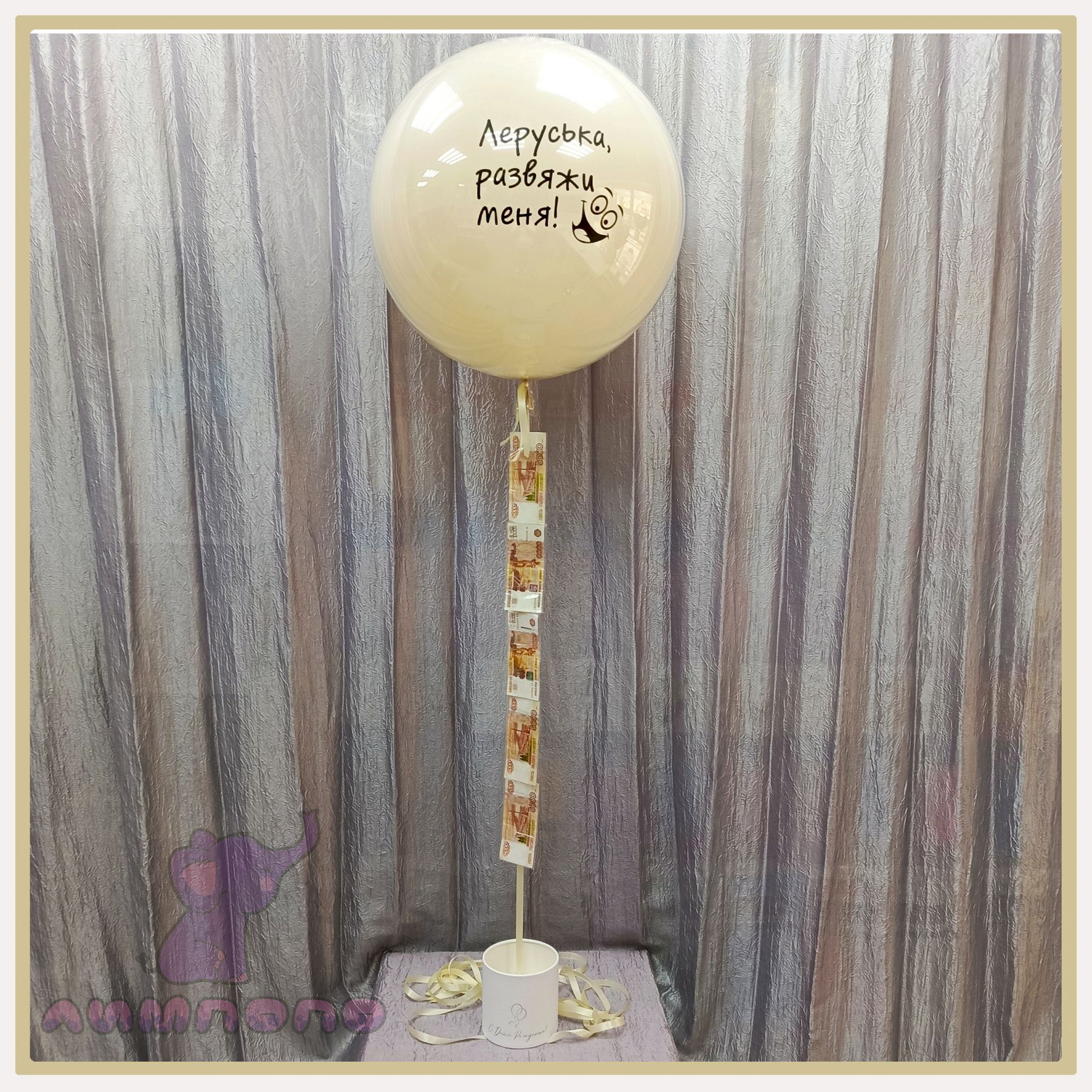 Money Box - это настольная композиция, которая украсит ваш денежный подарок. Композиция представляет собой надутый гелием шарик, который ленточками привязан к коробке. Как только получатель развязывает бантик, шарик взлетает вверх, а за ним и денежная лента